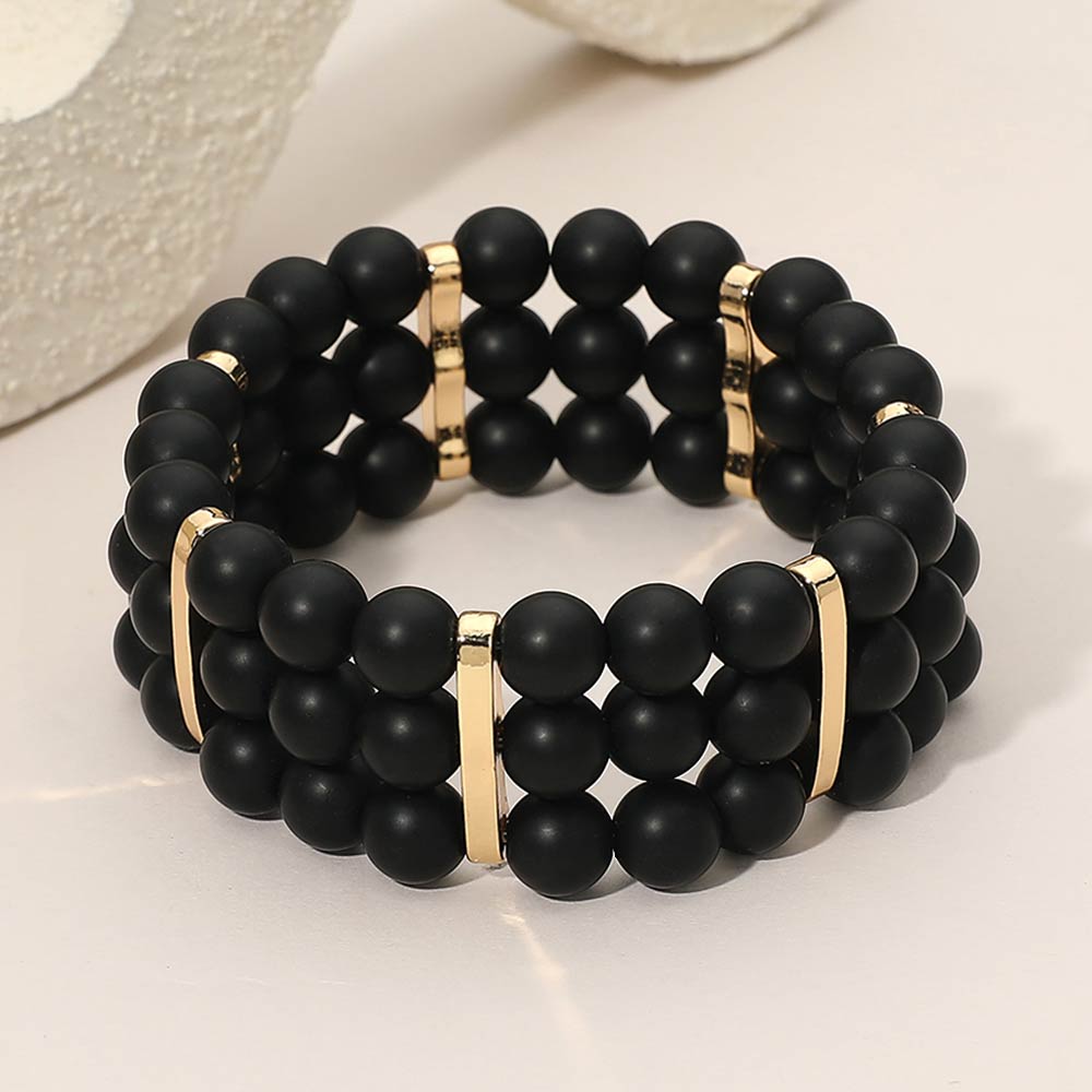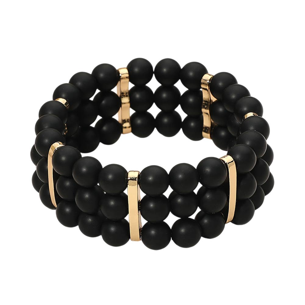 • Stylish multi row stretch bracelet designed with round beads and sleek spacer accents for a balanced, layered look. Easy slip-on fit offers comfort and flexibility for everyday wear. A versatile accessory ideal for casual outfits, boutique collections, stacking styles, and giftable fashion jewelry displays.