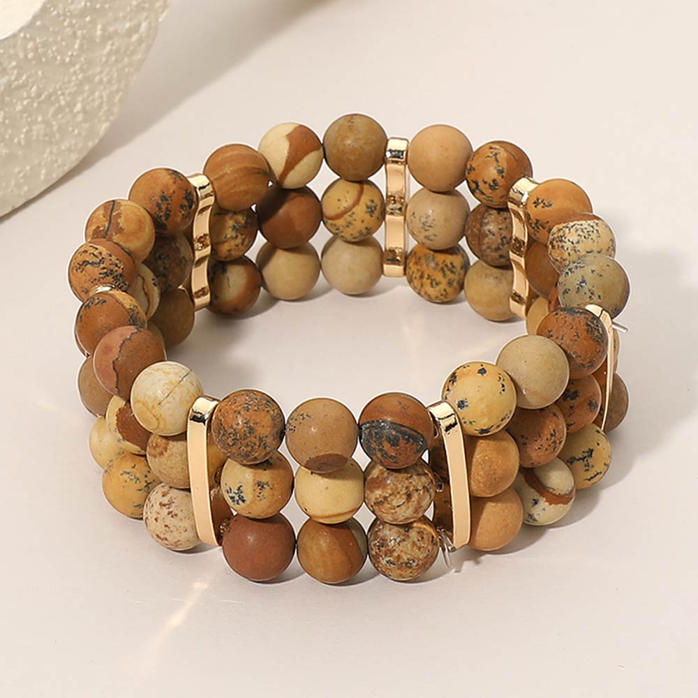 • Stylish multi row stretch bracelet designed with round beads and sleek spacer accents for a balanced, layered look. Easy slip-on fit offers comfort and flexibility for everyday wear. A versatile accessory ideal for casual outfits, boutique collections, stacking styles, and giftable fashion jewelry displays.