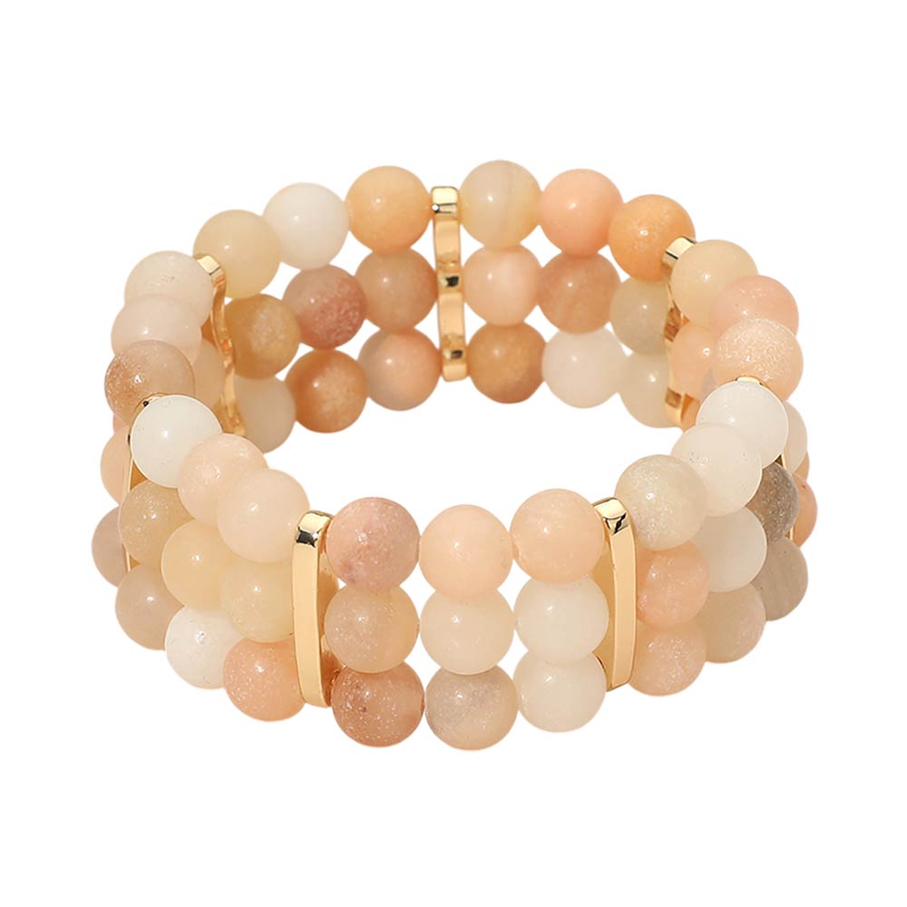 Details • Size : 1" H • Stretchable • Stylish multi row stretch bracelet designed with round beads and sleek spacer accents for a balanced, layered look. Easy slip-on fit offers comfort and flexibility for everyday wear. A versatile accessory ideal for casual outfits, boutique collections, stacking styles, and giftable fashion jewelry displays. • Lead and Nickel Compliant