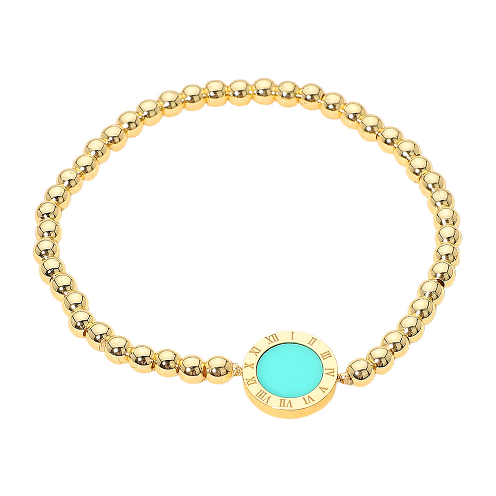 • This elegant gold beaded bracelet features a chic disc charm with Roman numerals, offering a unique twist to your accessories collection. A perfect fusion of timeless sophistication and modern style, this bracelet adds a touch of class to any outfit, making it ideal for both casual and formal occasions.
