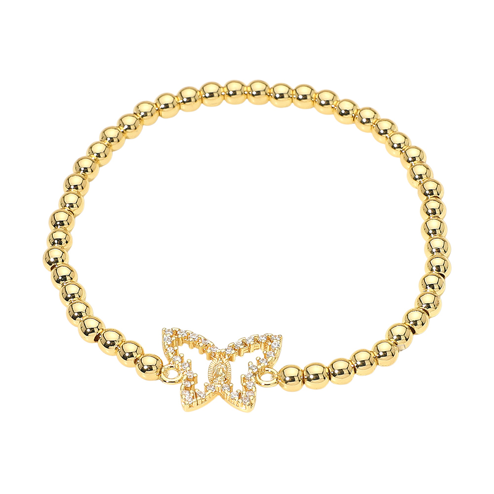 Details • Size : 0.6" H • Stretchable • This butterfly charm beaded stretch bracelet features polished round beads accented with a detailed butterfly centerpiece for a refined yet playful look. Designed with a flexible slip-on fit, it offers all-day comfort and effortless styling. Ideal for stacking or wearing alone, this bracelet adds charm-driven appeal to everyday outfits, seasonal assortments, and gift-focused accessory collections. • CZ Cubic Zirconia • Stainless Steel