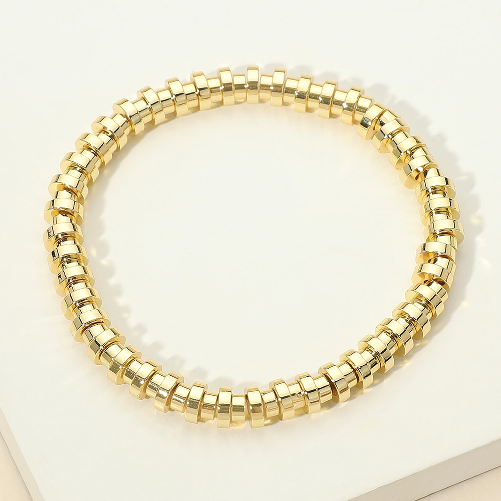 • This stainless steel flat disc bead stretch bracelet features sleek, evenly spaced flat beads that create a clean, modern look with effortless wear. Designed with a flexible slip-on fit, it offers everyday comfort and easy styling. Perfect for stacking or wearing solo, this bracelet complements casual and polished outfits alike, making it a versatile addition to curated accessory collections and gift-ready assortments.