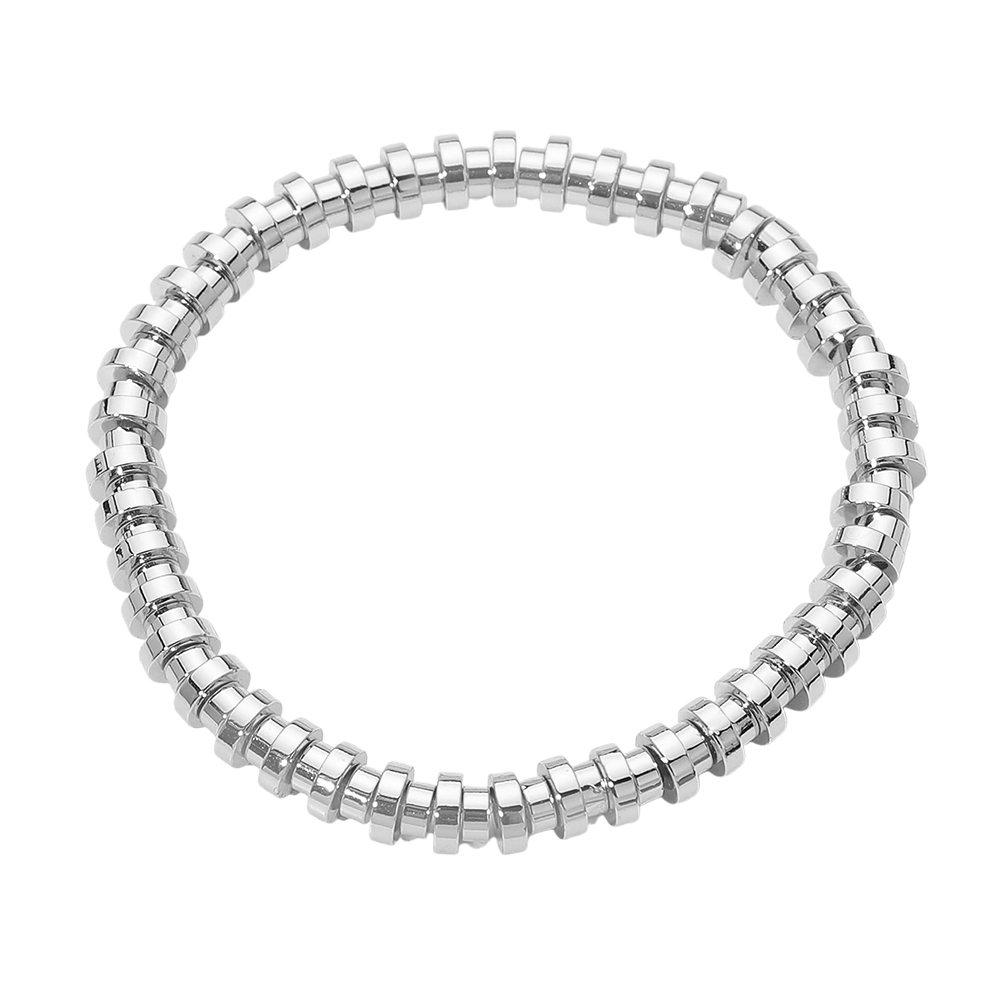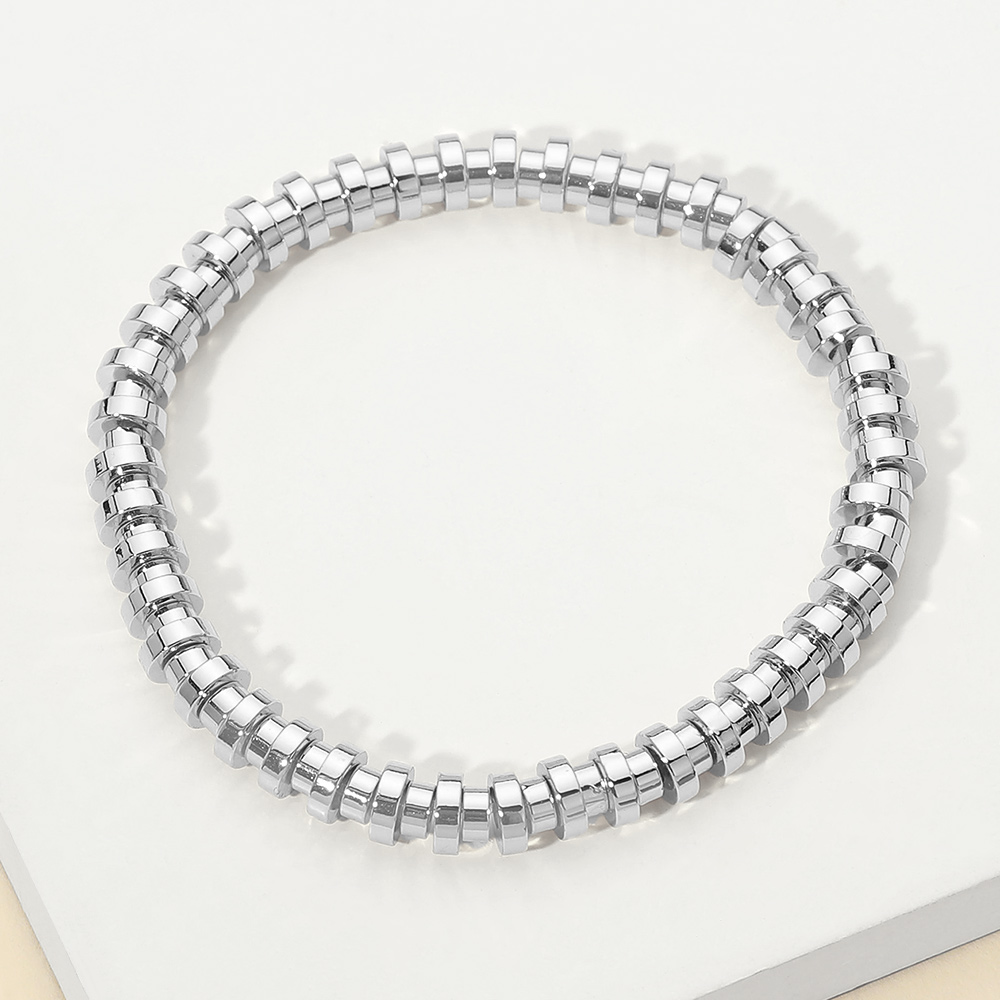 Details • Size : 0.25" H • Stretchable • This stainless steel flat disc bead stretch bracelet features sleek, evenly spaced flat beads that create a clean, modern look with effortless wear. Designed with a flexible slip-on fit, it offers everyday comfort and easy styling. Perfect for stacking or wearing solo, this bracelet complements casual and polished outfits alike, making it a versatile addition to curated accessory collections and gift-ready assortments. • Stainless Steel