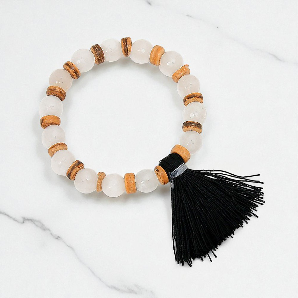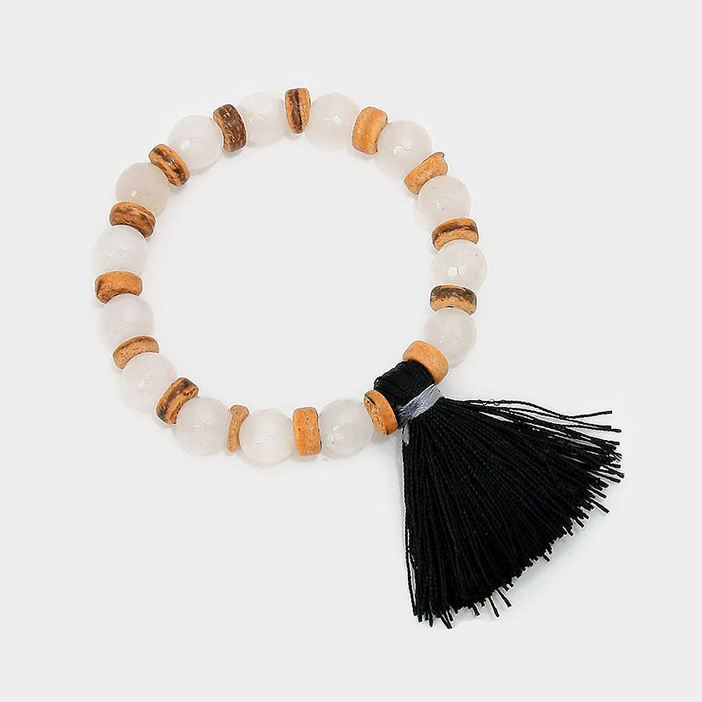 Thread tassel charm beaded stretch bracelet
