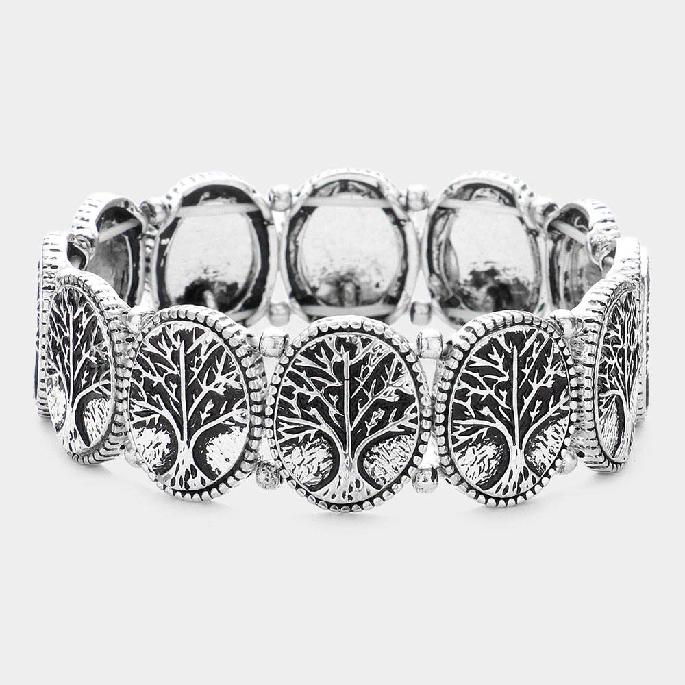 Antique Metal Flower Heart Tree Of Life Pendant Necklace