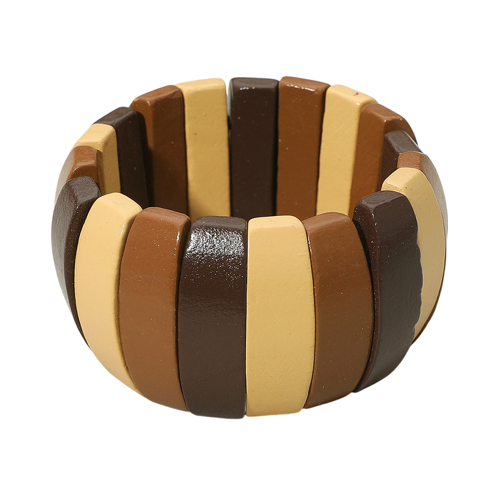 • Add a touch of natural charm with this multitone wooden stretch bracelet featuring alternating smooth panels in warm earthy shades. Its chunky, bold design creates a statement look while maintaining everyday versatility, making it a perfect accessory for casual or boho styles.