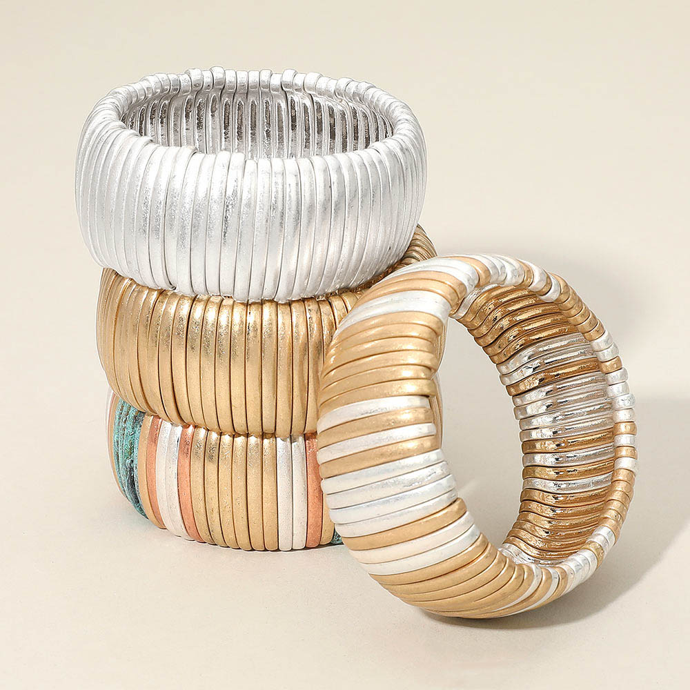 Wide Ribbed Matte Metal Ribbed Stretch Bracelet Wide Ribbed Matte Metal Ribbed Stretch Bracelet Wide Ribbed Matte Metal Ribbed Stretch Bracelet