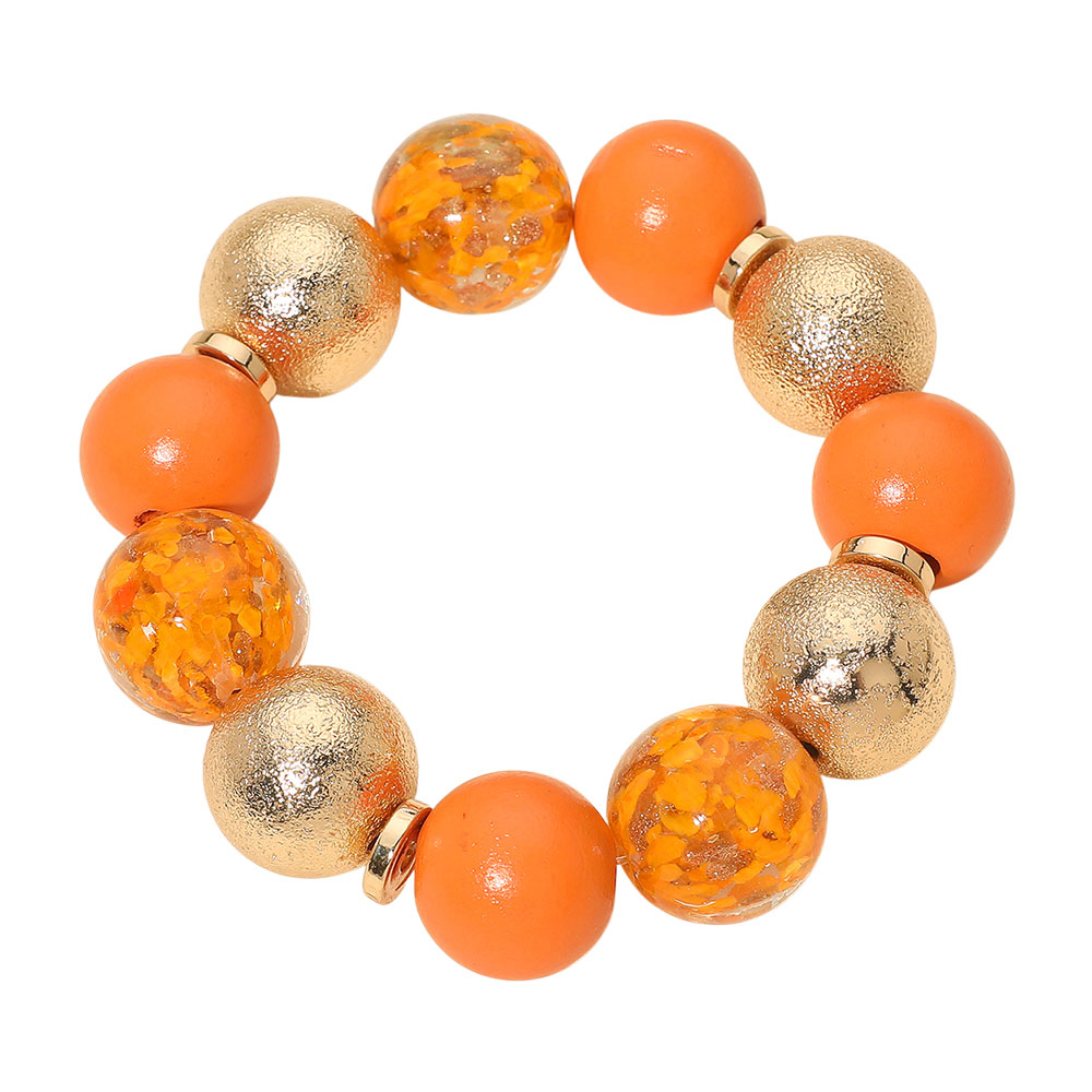 Wooden Textured Metal Resin Ball Beaded Stretch Bracelet