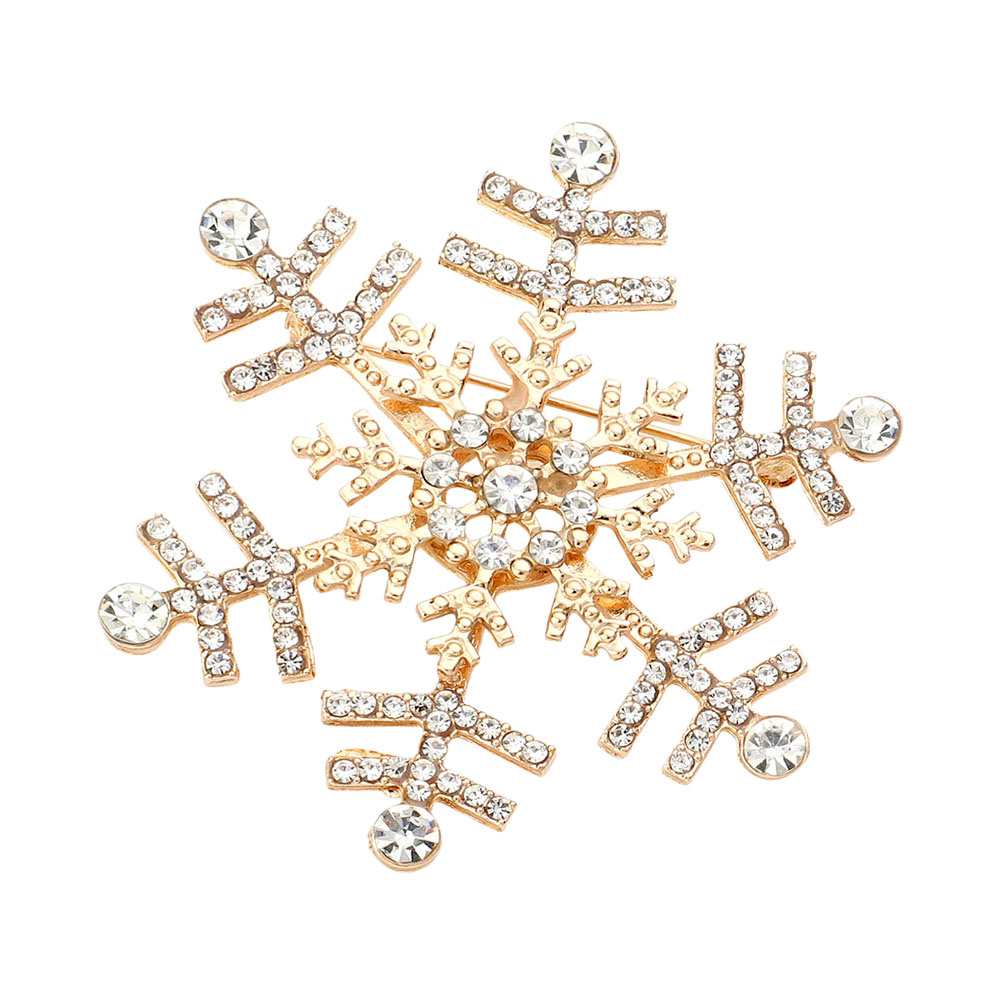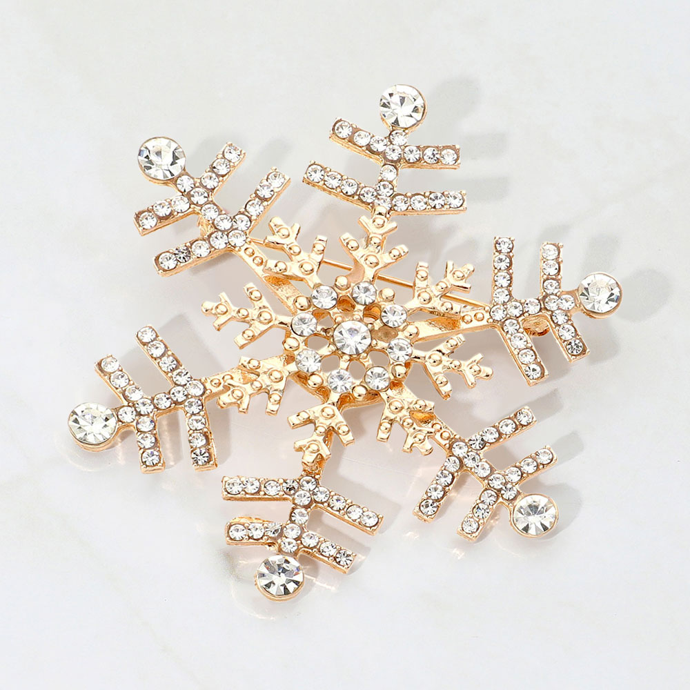 • Elegant snowflake brooch adorned with shimmering crystals, perfect for adding a festive touch to coats, scarves, or winter outfits. A charming accessory that brings seasonal sparkle and refined style to any look.