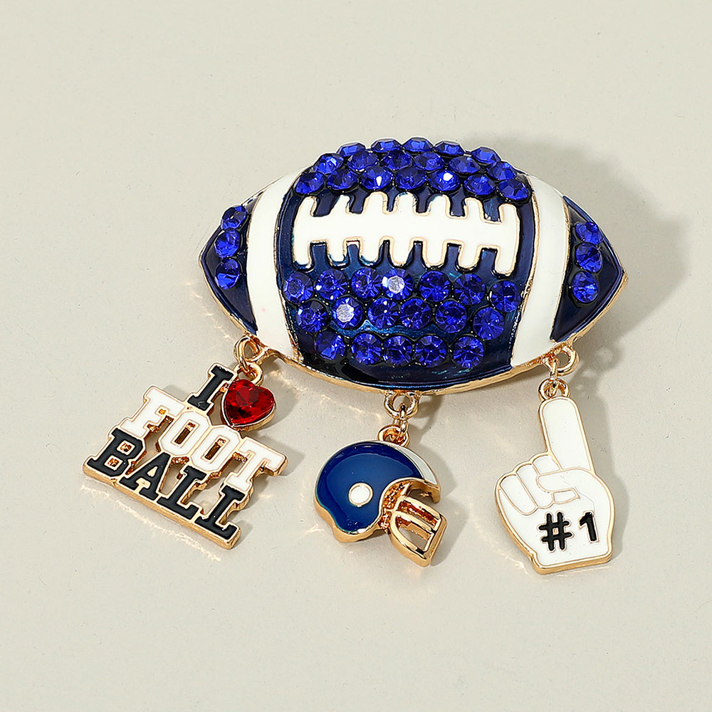 • Sporty football brooch featuring rhinestone football design with dangling charms including helmet, #1 foam finger, and “I Love Football.” Perfect accessory for gameday outfits, tailgates, or fan gear.