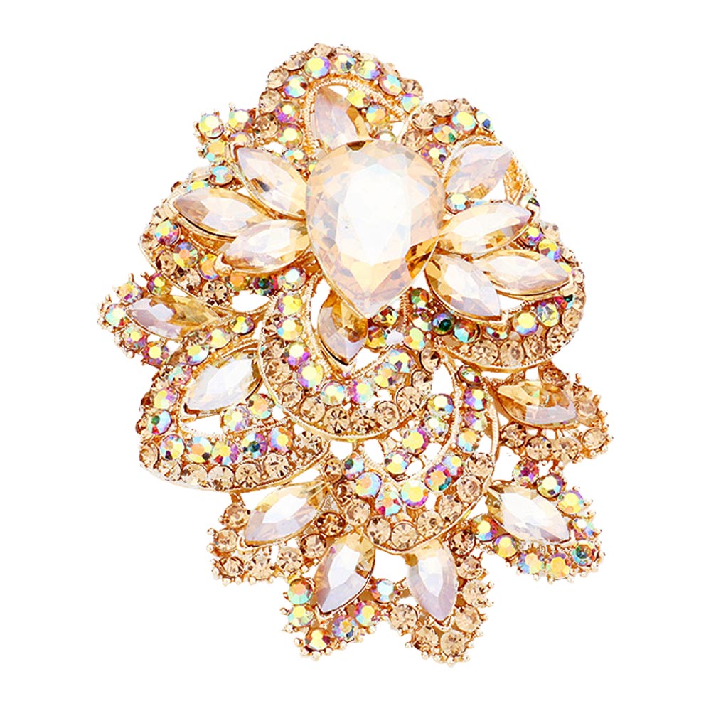 • This statement brooch showcases a striking teardrop centerpiece surrounded by layered sparkling accents that create a dramatic, light-reflecting finish. Designed to elevate any outfit, it adds an elegant touch ideal for formal events, special occasions, or standout everyday styling.