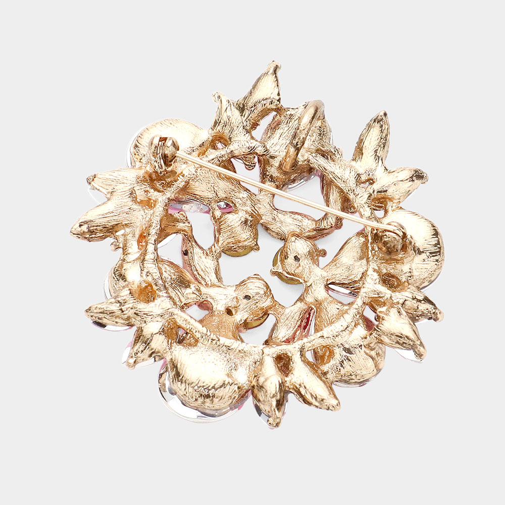 Glass Crystal Teardrop Wreath Pin Brooch