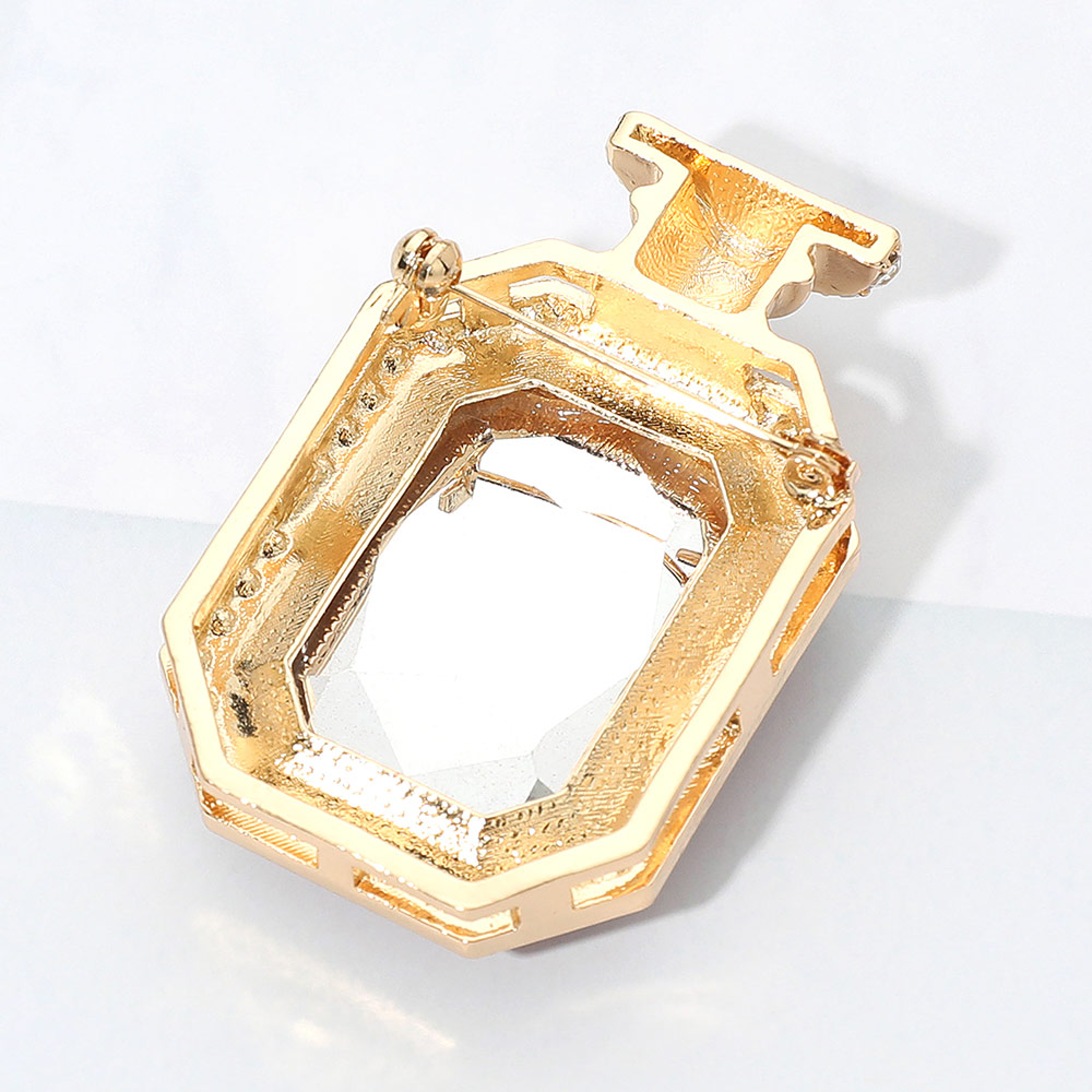 • Elevate your style with this elegant gem perfume bottle brooch. Featuring a dazzling faceted centerpiece framed by sparkling accents, it captures a timeless charm inspired by luxury fragrance design, perfect for adding sophistication to any outfit or accessory.