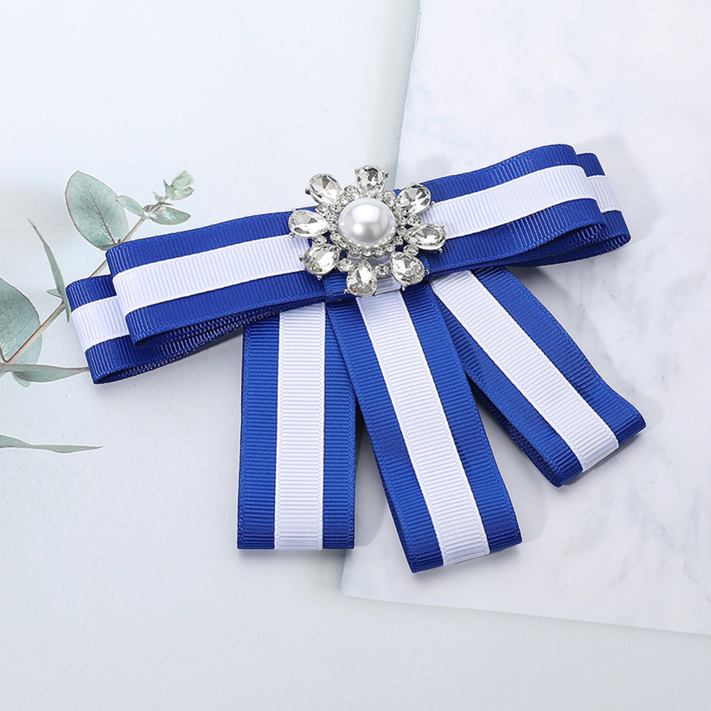 Details • Size : 5.25" X 3.75" • Dual : Brooch / Hair Pinch Clip • Add charm and sophistication with this striped ribbon bow brooch, designed with a pearl and crystal centerpiece for a refined look. Perfect for formal or casual wear, this versatile accessory makes a chic statement piece and a thoughtful gift for jewelry and fashion lovers alike.