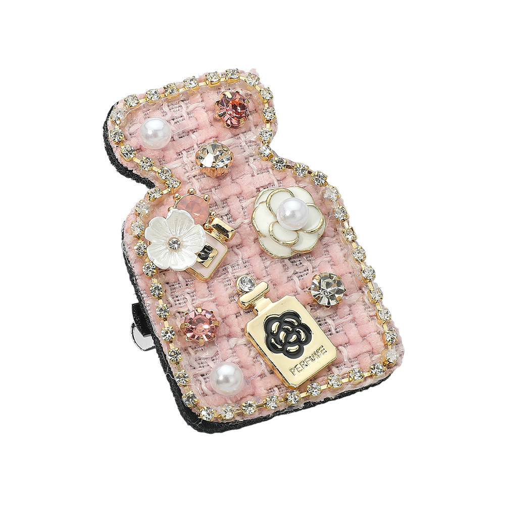 • Elevate your hairstyle with this perfume bottle inspired hair clip adorned with rhinestones, pearls, and floral accents. Its detailed design brings sophistication to parties, events, or casual wear, making it a versatile statement piece for any occasion.