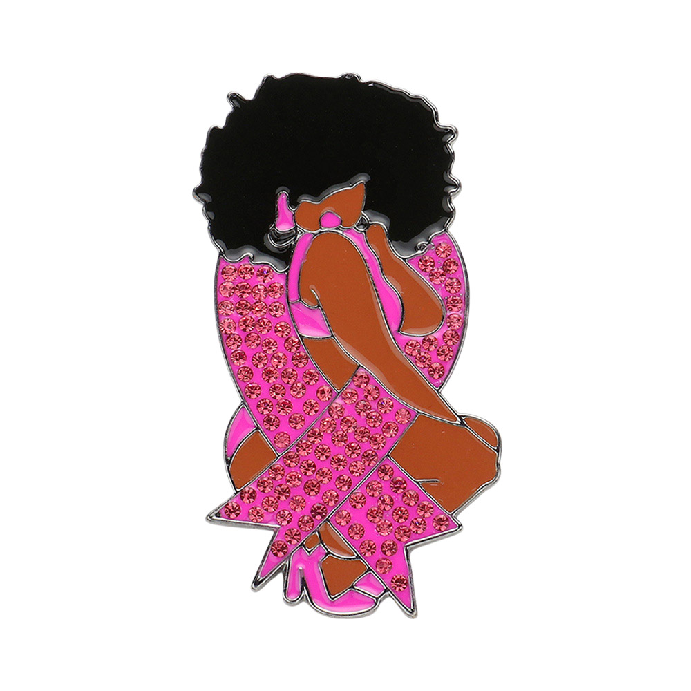 Pink Ribbon Accented Enamel Metal Afro Girl Pin Brooch Pink Ribbon Accented Enamel Metal Afro Girl Pin Brooch Pink Ribbon Accented Enamel Metal Afro Girl Pin Brooch
