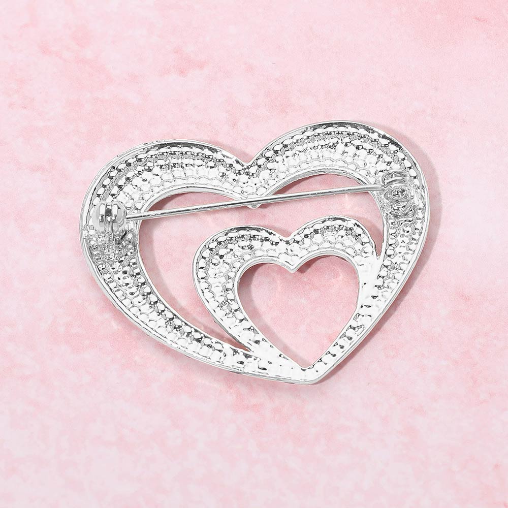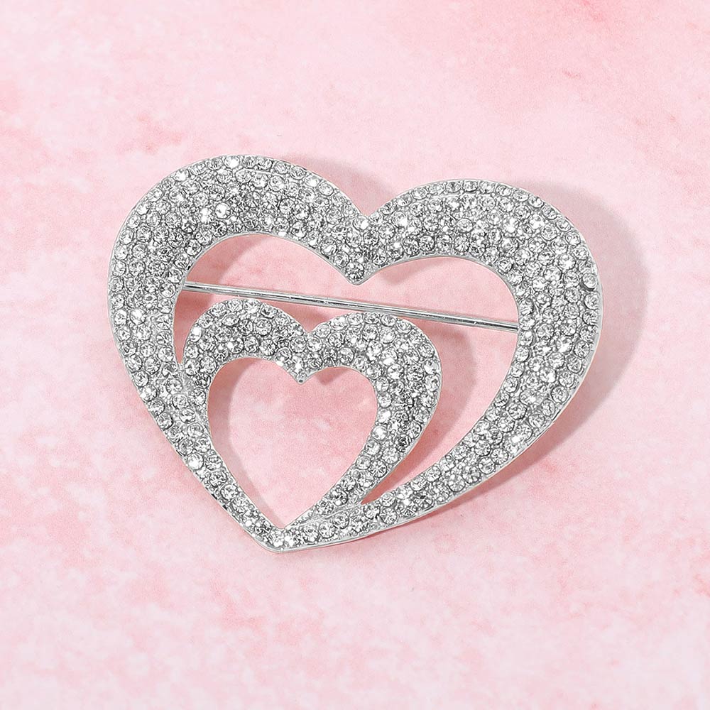 • Elegant double heart brooch featuring layered heart silhouettes with sparkling rhinestone accents. A romantic statement accessory ideal for jackets, dresses, scarves, or bags, perfect for gifting, special occasions, and expressive everyday styling.