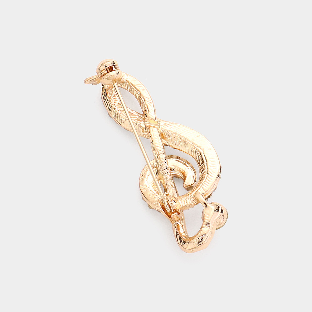 Rhinestone Paved Treble Clef Pin Brooch