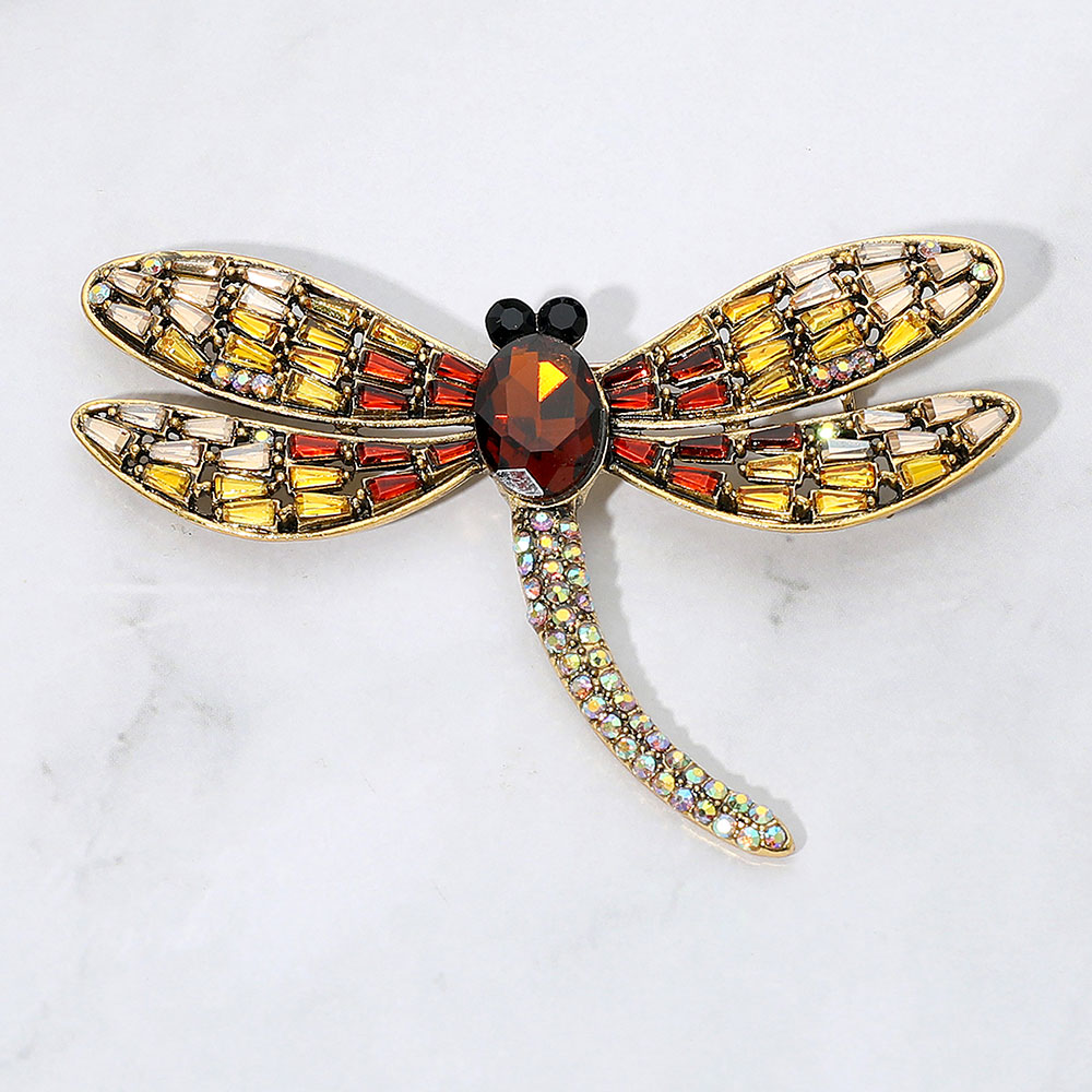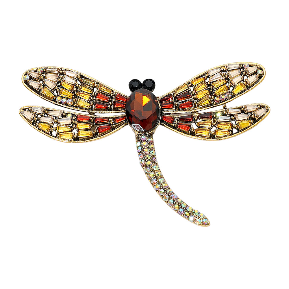Details • Size : 3" X 2.2" • Pin Brooch • Elegant dragonfly brooch featuring shimmering crystal accents and intricate wing details. This statement accessory adds a touch of sophistication and charm to jackets, scarves, or bags, making it a perfect piece for both everyday wear and special occasions. • Lead and Nickel Compliant