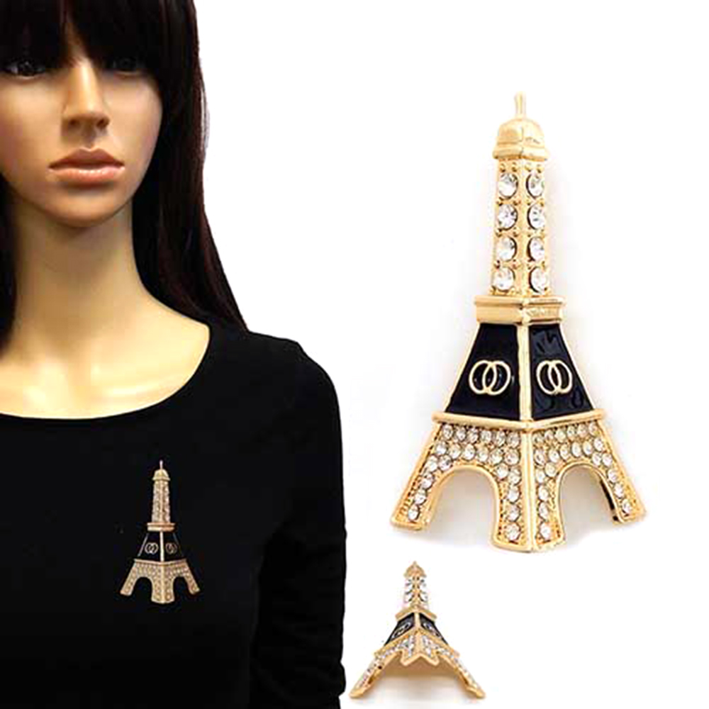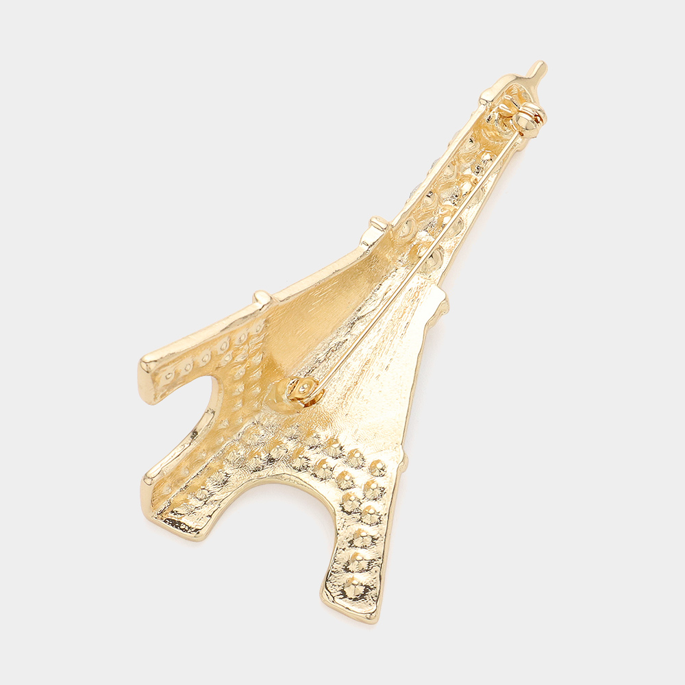 Stone Paved Eiffel Tower Pointed Pin Brooch