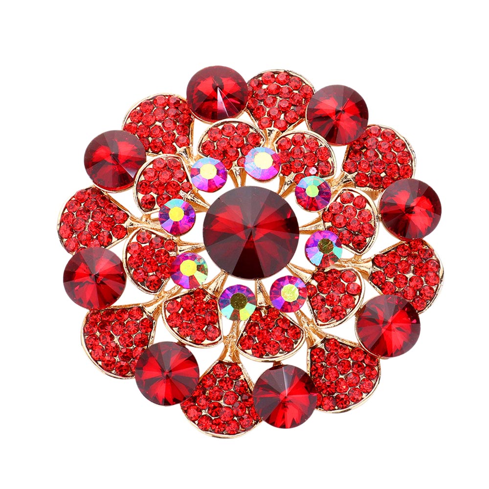 • This stunning round crystal flower brooch features layered gem accents that create a dazzling floral design. Perfect for elevating any outfit, it adds a touch of vintage-inspired glamour and refined brilliance to jackets, scarves, or formal attire.