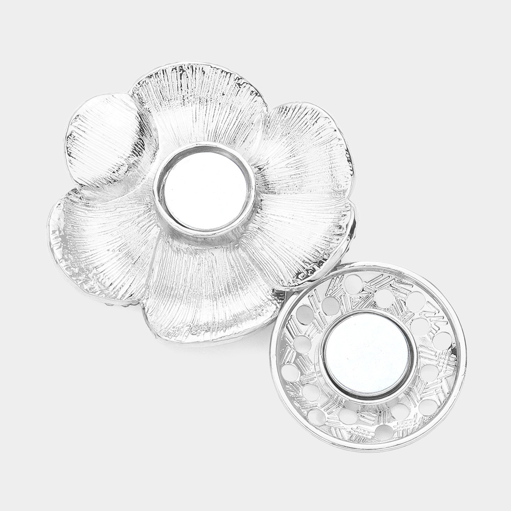Stone Accent Hammered Metal Petal Flower Link Drop Statement Earrings