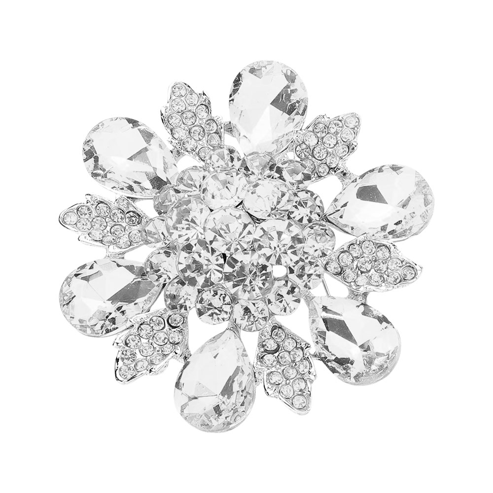 Details • Size : 2.5" x 2.5" • Pin Brooch • This elegant crystal flower brooch adds a radiant touch to any outfit with its beautifully arranged sparkling stones and refined floral silhouette. Perfect for elevating everyday looks or enhancing formal attire, it offers timeless charm and eye-catching brilliance. • Lead and Nickel Compliant