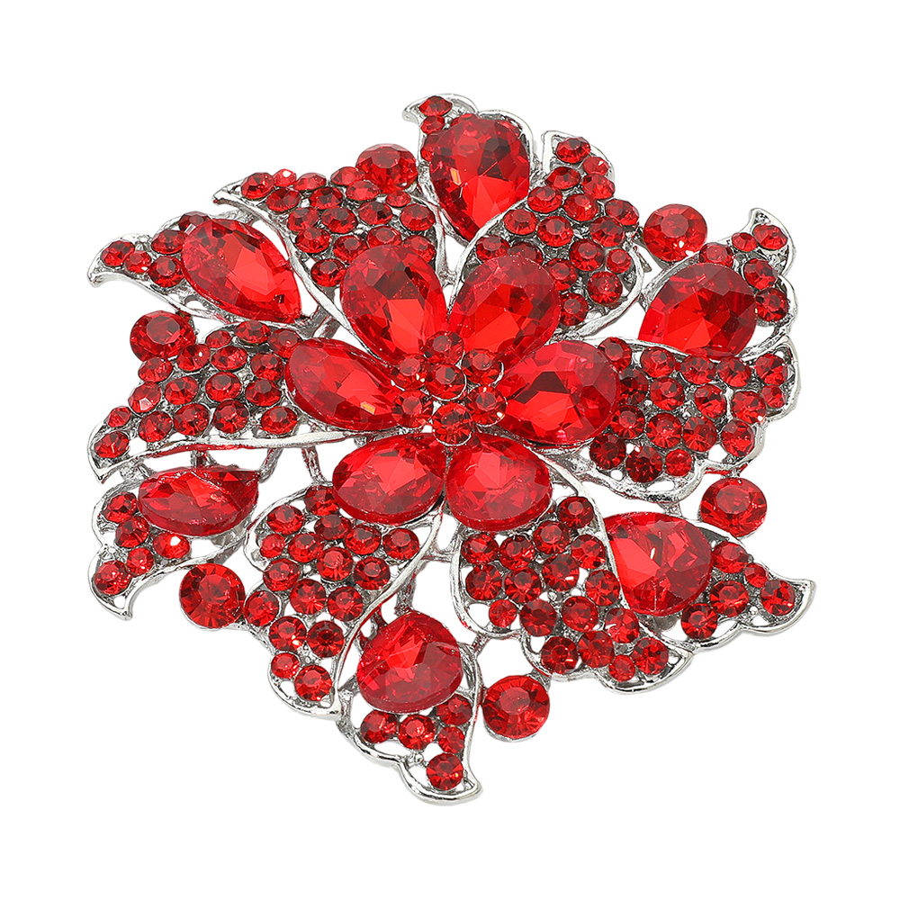 • Elegant floral brooch featuring dazzling gemstone accents arranged in a radiant petal design. Perfect for adding a touch of glamour to jackets, dresses, or scarves, this statement accessory enhances any outfit with a refined and eye-catching sparkle.