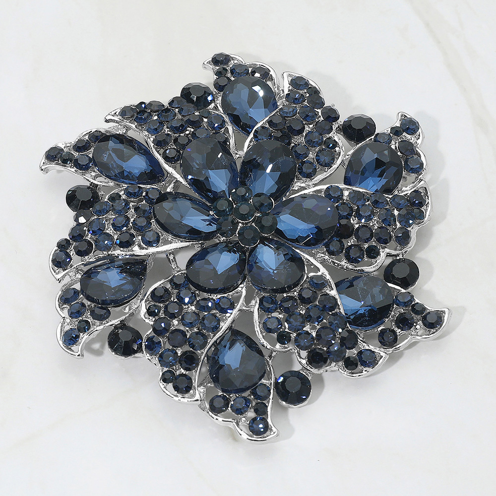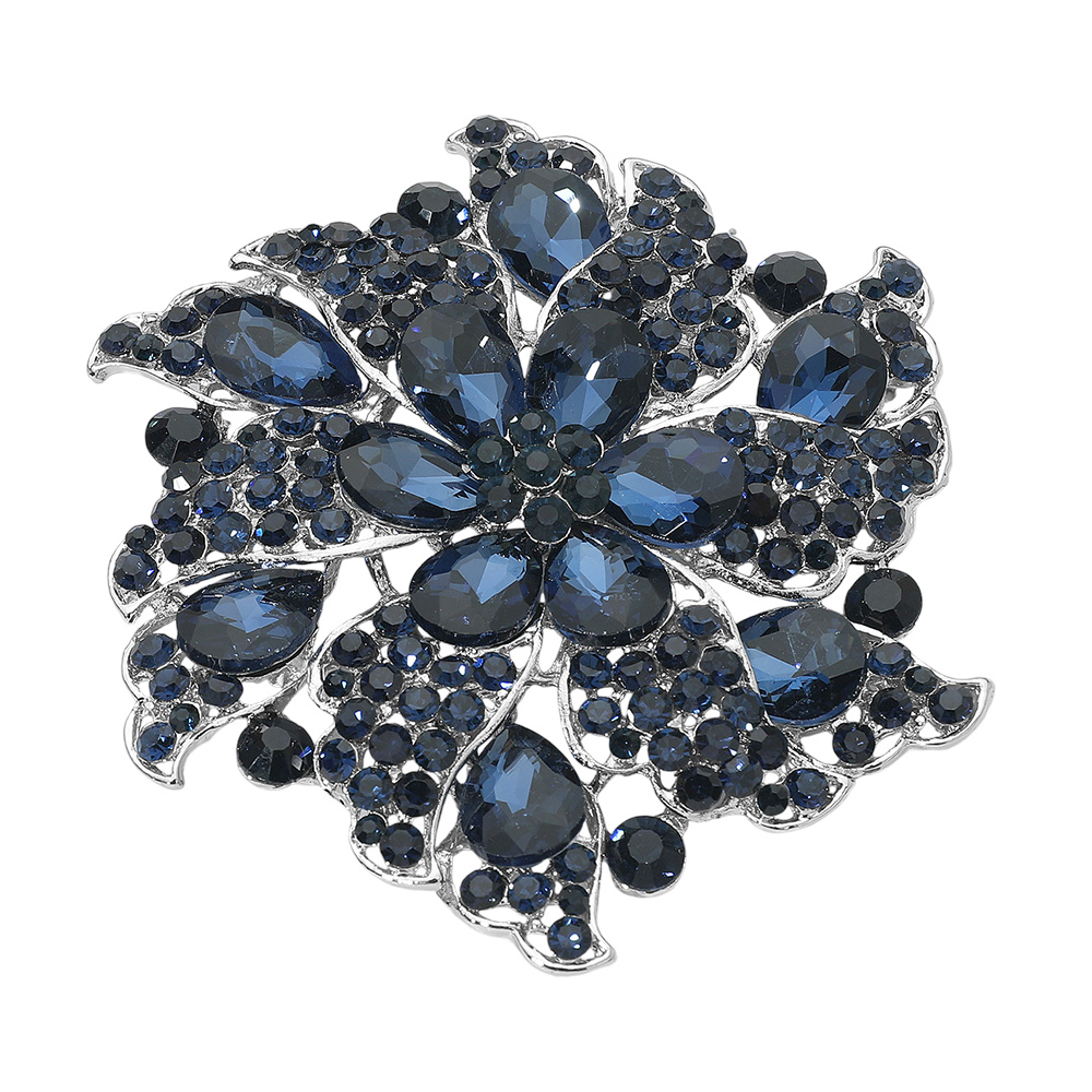 Details • Size : 4" X 4" • Pin Brooch • Elegant floral brooch featuring dazzling gemstone accents arranged in a radiant petal design. Perfect for adding a touch of glamour to jackets, dresses, or scarves, this statement accessory enhances any outfit with a refined and eye-catching sparkle. • Lead and Nickel Compliant