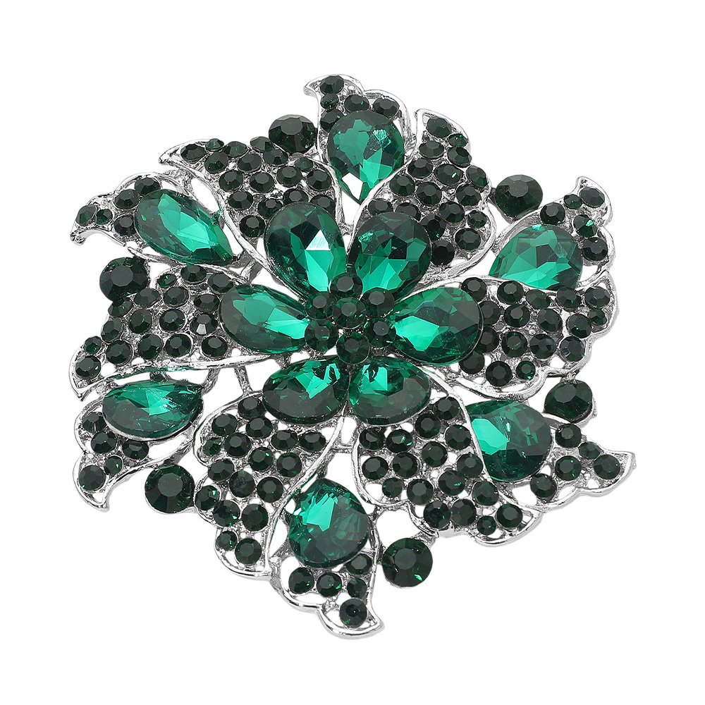 • Elegant floral brooch featuring dazzling gemstone accents arranged in a radiant petal design. Perfect for adding a touch of glamour to jackets, dresses, or scarves, this statement accessory enhances any outfit with a refined and eye-catching sparkle.
