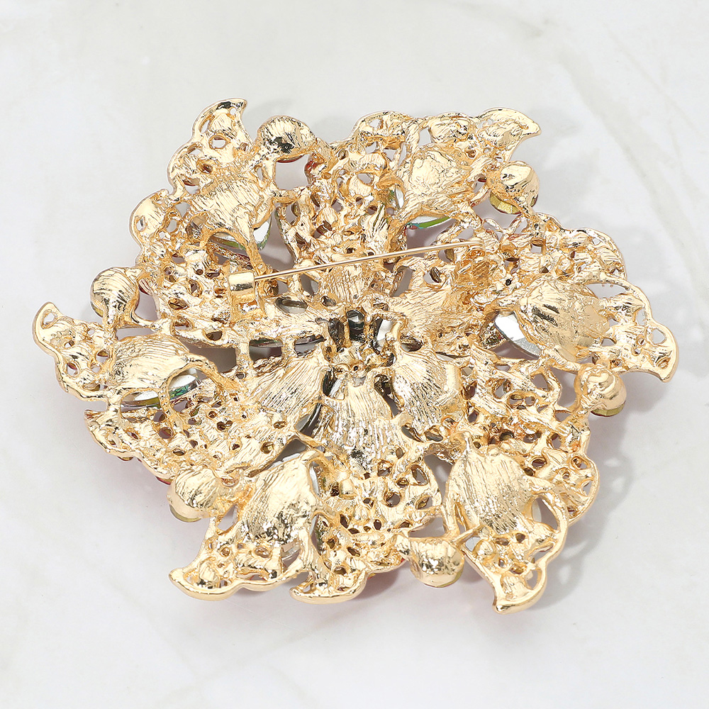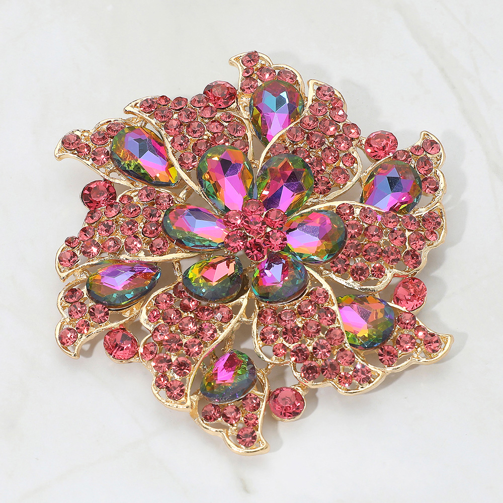 • Elegant floral brooch featuring dazzling gemstone accents arranged in a radiant petal design. Perfect for adding a touch of glamour to jackets, dresses, or scarves, this statement accessory enhances any outfit with a refined and eye-catching sparkle.