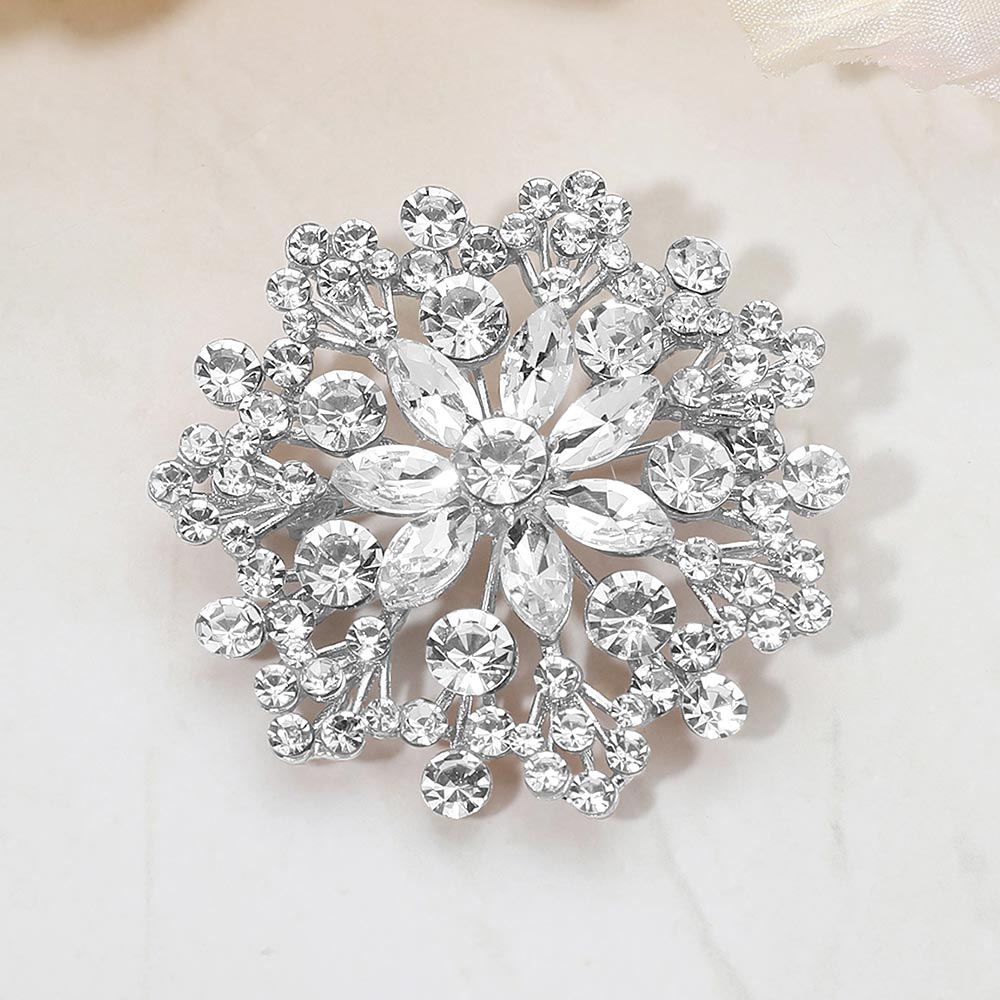 • Eye-catching floral statement brooch designed with layered crystal accents arranged in a radiant cluster silhouette. This decorative pin adds elegant sparkle and dimension to jackets, scarves, dresses, and accessories, making it ideal for formal styling, seasonal collections, and fashion-forward displays.