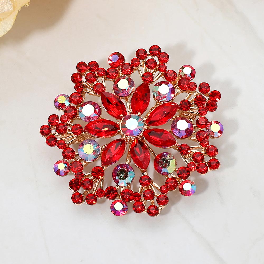 • Eye-catching floral statement brooch designed with layered crystal accents arranged in a radiant cluster silhouette. This decorative pin adds elegant sparkle and dimension to jackets, scarves, dresses, and accessories, making it ideal for formal styling, seasonal collections, and fashion-forward displays.