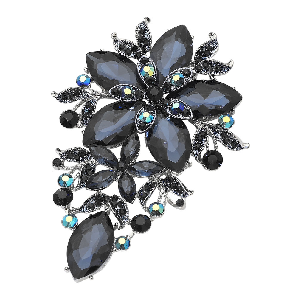 • Sparkling floral marquise gemstone cluster brooch featuring layered petal shapes and radiant faceted stones. A statement accessory that adds eye-catching brilliance to jackets, dresses, scarves, hats, and special occasion outfits.