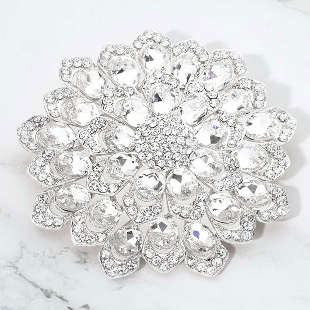 • Stunning floral brooch designed with layered petals and iridescent crystal gemstones. Perfect as a statement accessory for dresses, scarves, shawls, or special occasions, adding sparkle and elegance to any outfit.