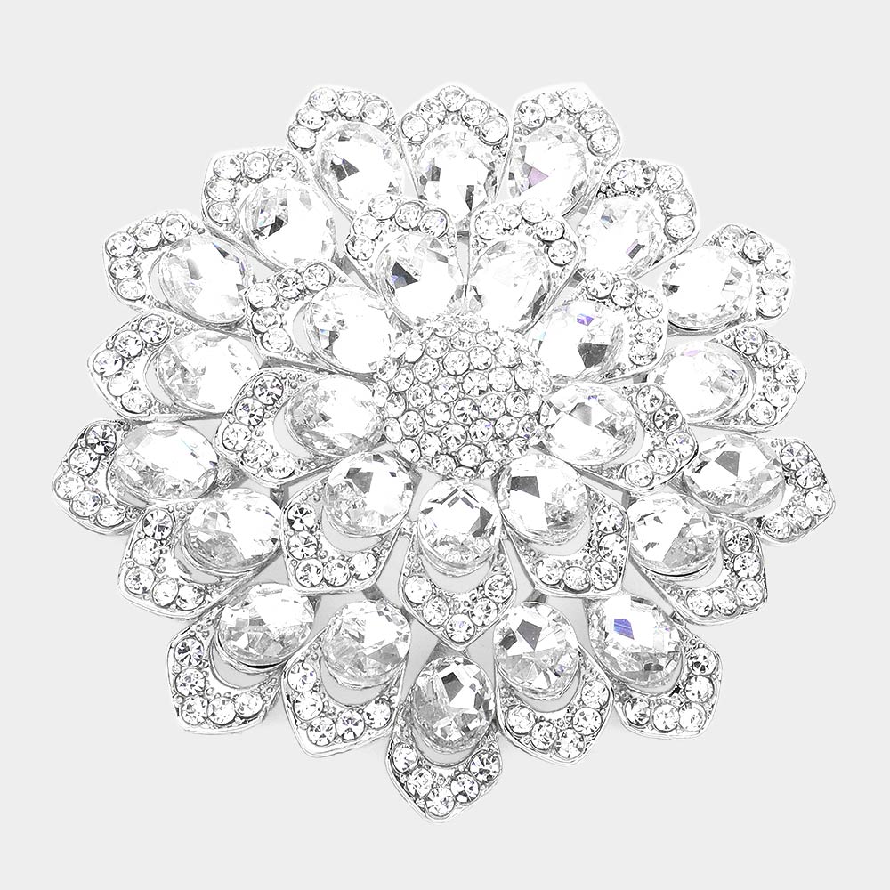 Glass Stone Embellished Flower Pin Brooch Glass Stone Embellished Flower Pin Brooch Glass Stone Embellished Flower Pin Brooch