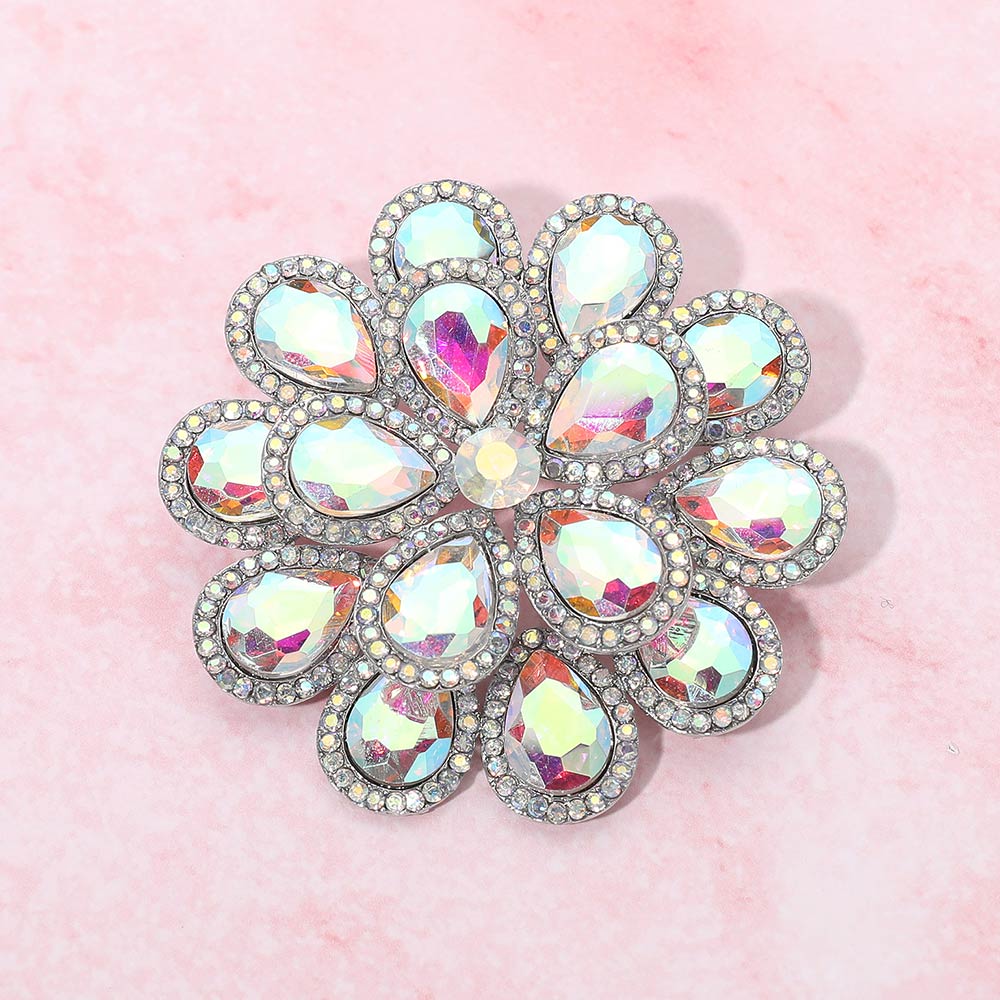• Eye-catching floral brooch designed with layered teardrop-shaped crystal accents forming a radiant flower silhouette. A bold statement piece ideal for jackets, dresses, scarves, and special occasion styling, perfect for gifting or elegant everyday looks.
