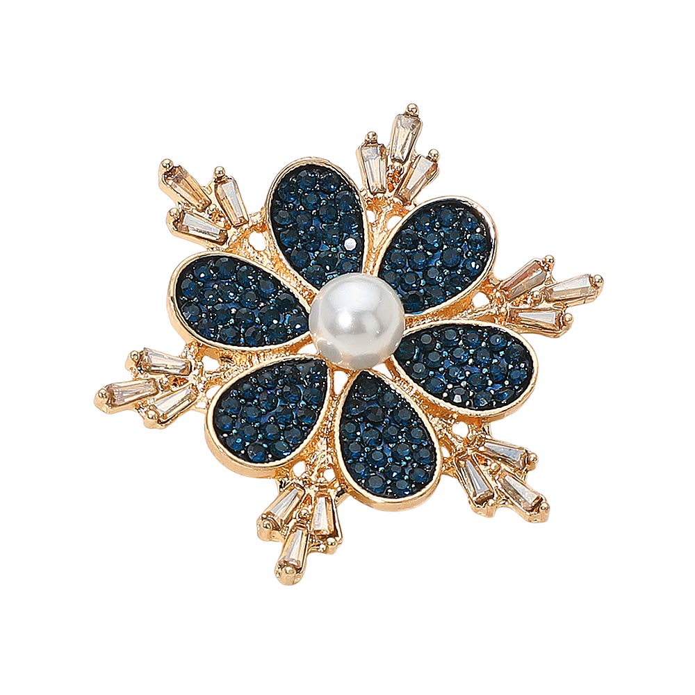 Details • Size : 1.75" X 1.5" • Pin Brooch • Enhance your style with this elegant floral brooch featuring sparkling crystal petals and a radiant pearl center. A gold-tone finish adds refined charm, making it the perfect accessory to elevate jackets, dresses, scarves, and bags for weddings, parties, or everyday sophistication. • Lead and Nickel Compliant