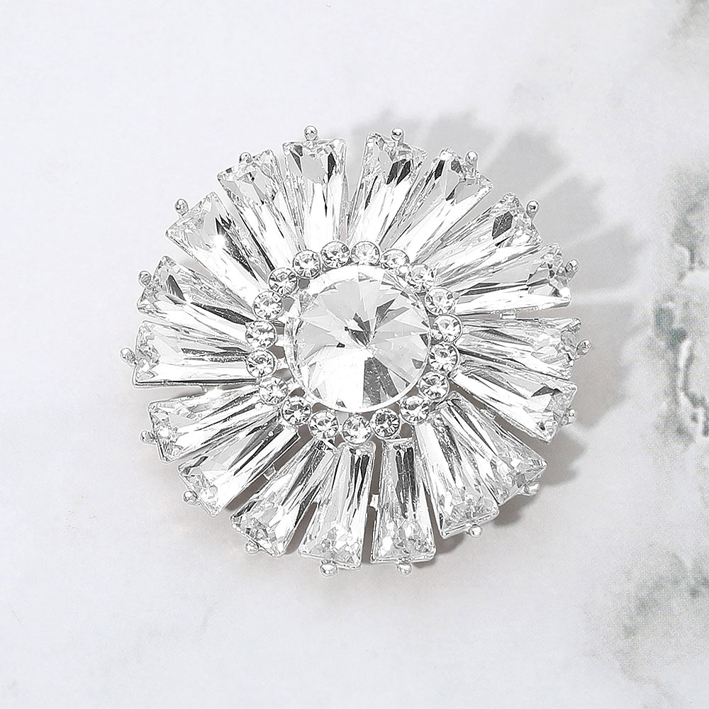 • Make a statement with this radiant burst brooch featuring a dazzling faceted gemstone centerpiece surrounded by precision-cut accents. Its bold, symmetrical design adds instant glamour, perfect for elevating evening wear, formal attire, or stylish outerwear.