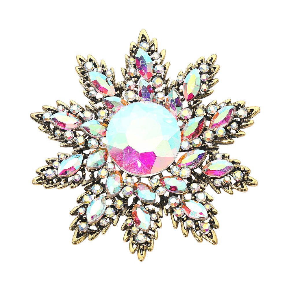 • Make a statement with this crystal floral starburst brooch, featuring a radiant layered design and a brilliant center stone that catches the light beautifully. A versatile accessory for elevating jackets, scarves, handbags, or special occasion looks.