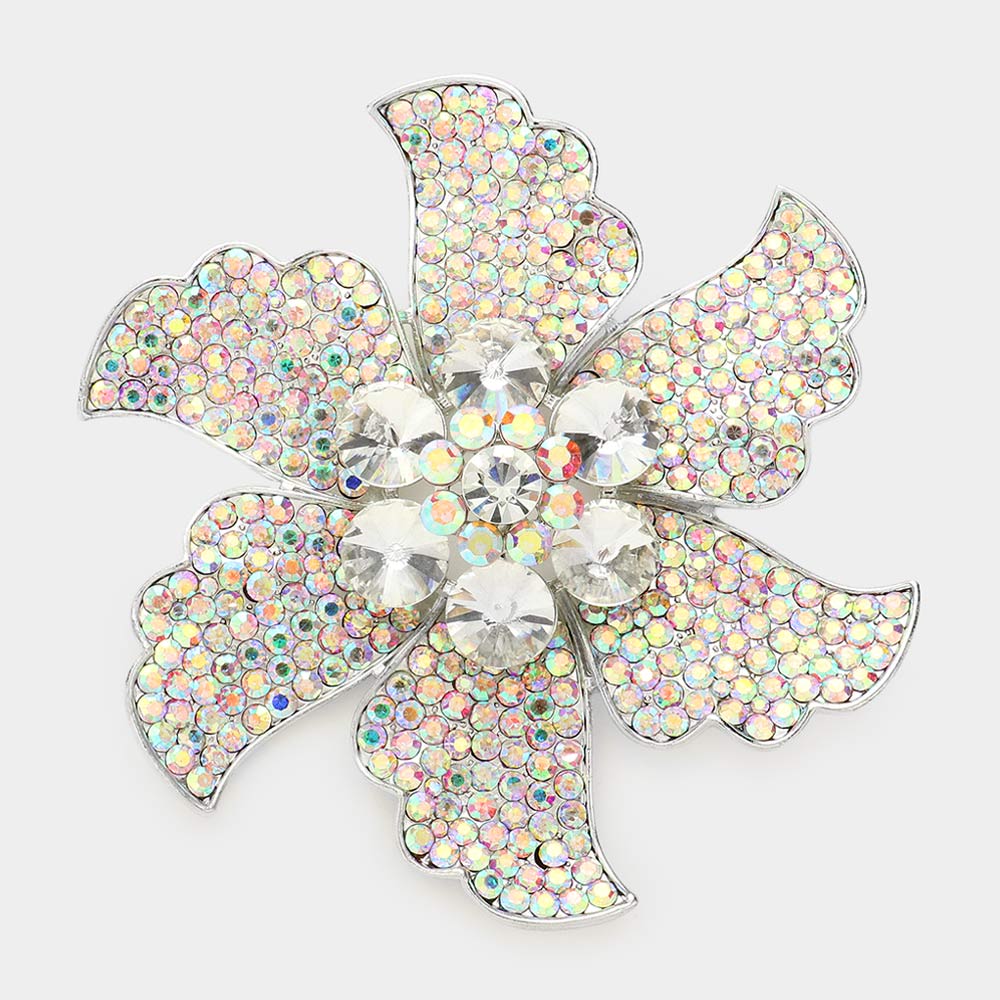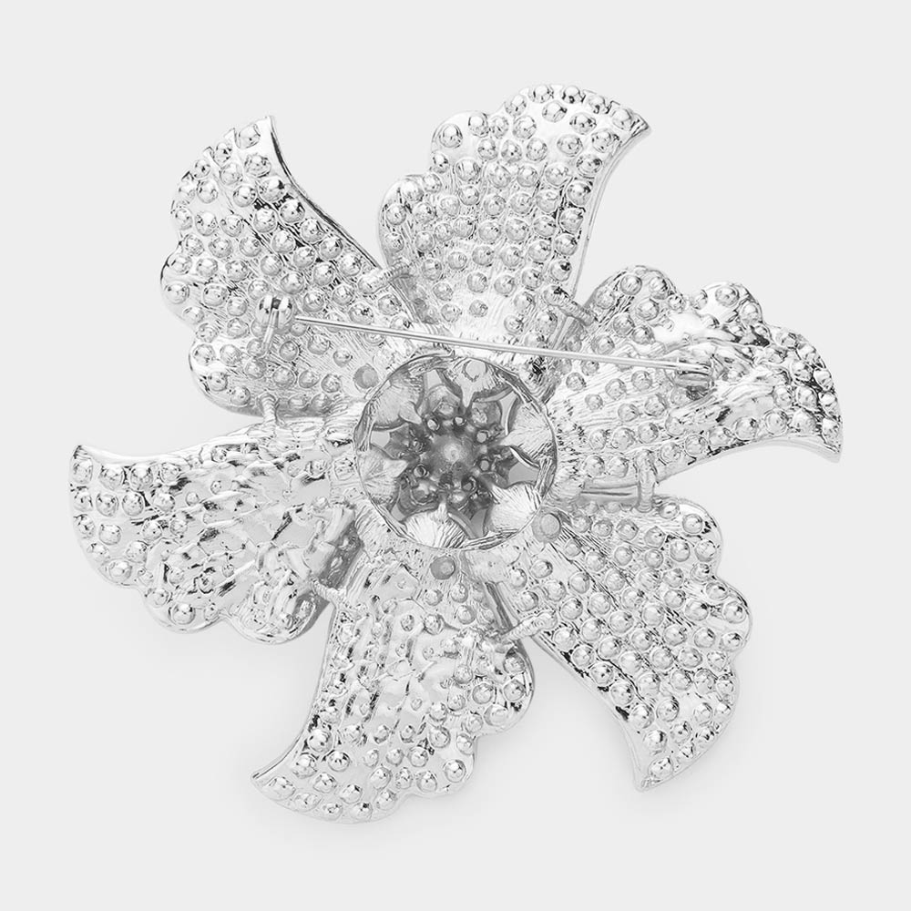 Round Stone Centered Rhinestone Embellished Branch Flower Pin Brooch