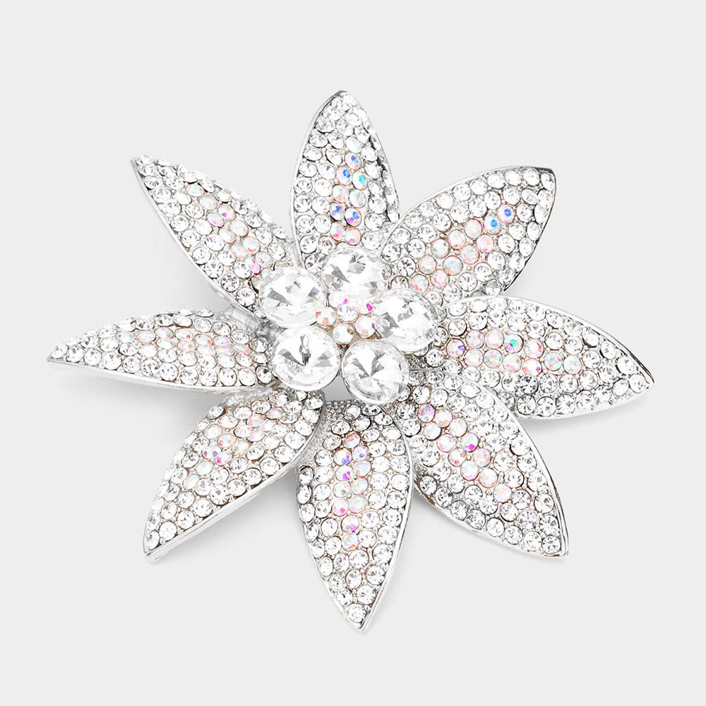 Stone Embellished Flower Pin Brooch