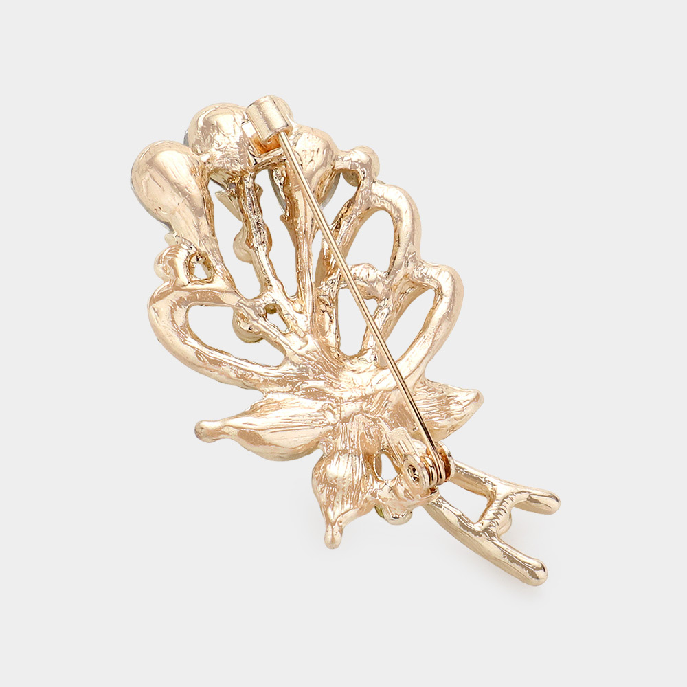 • Elegant floral spray brooch featuring a sparkling crystal-inspired design with layered petal details and radiant accents. A refined statement accessory that adds vintage charm and eye-catching brilliance to jackets, dresses, scarves, bags, and special occasion styling.