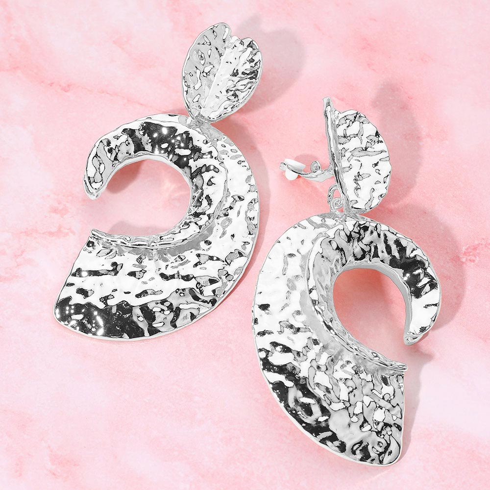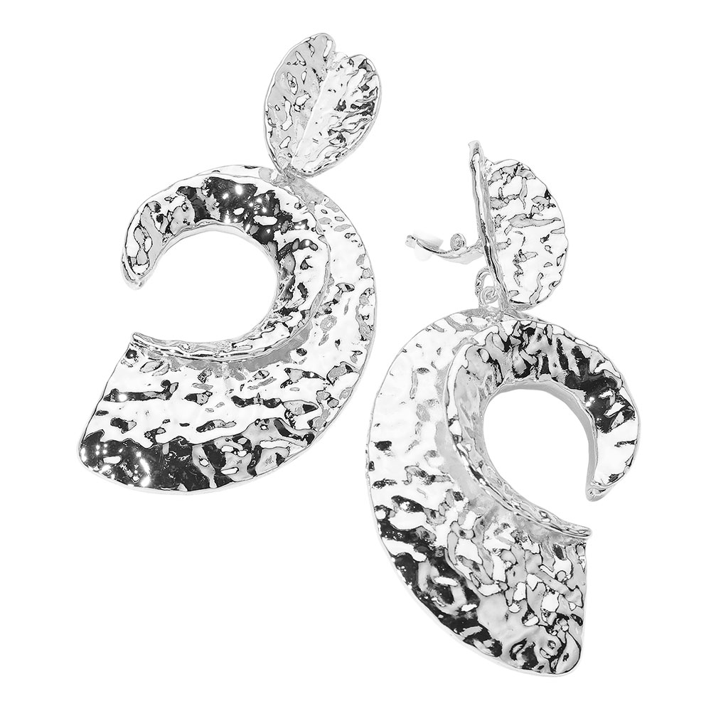 • Bold hammered clip-on statement earrings featuring an abstract crescent-cut open shape with textured detailing for standout shine. Lightweight and comfortable for non-pierced ears, these sculptural earrings elevate any outfit with artistic, modern flair—perfect for events, evenings out, or stylish everyday wear.