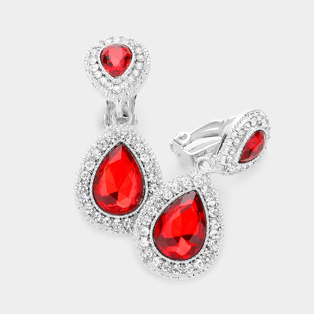 Double Teardrop Link Dangle Evening Clip on Earrings