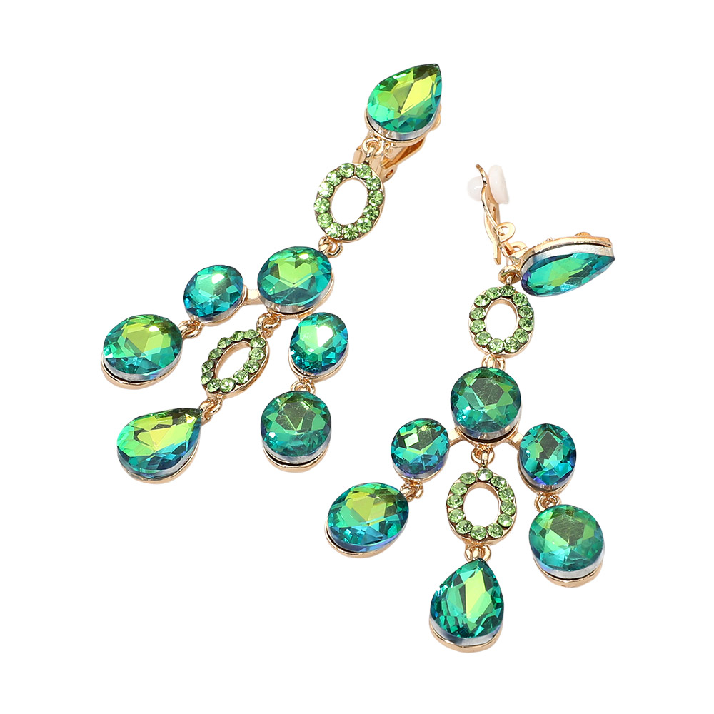 Details • Size : 1.2" X 3.2" • Clip On • Statement chandelier earrings featuring cascading faceted accents with a clip-on design for comfortable, secure wear. Ideal for special occasions, evening looks, and boutique collections, offering elegant movement, eye-catching sparkle, and versatile styling appeal without pierced ears. • Lead and Nickel Compliant