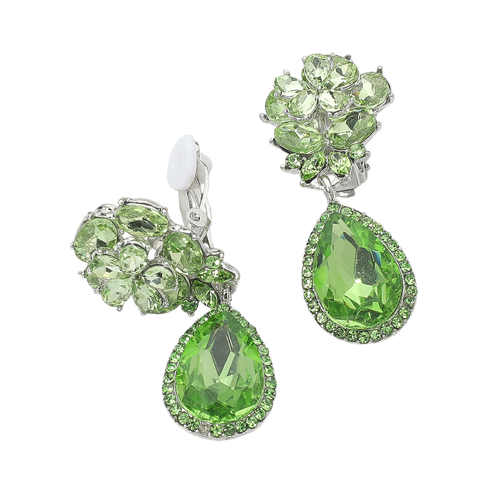 Flower Glass Crystal Teardrop Dangle Clip On Earrings Flower Glass Crystal Teardrop Dangle Clip On Earrings