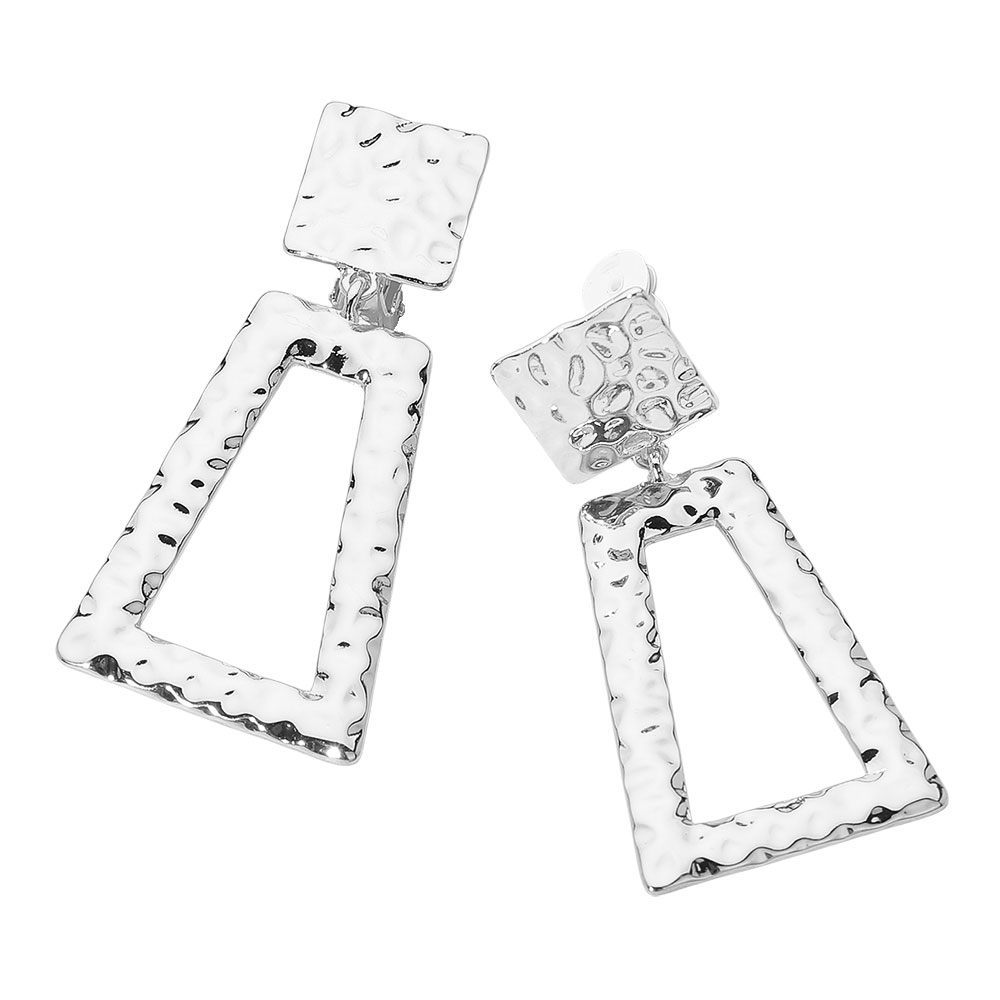 Geometric Hammered Metal Drop Clip On Earrings Geometric Hammered Metal Drop Clip On Earrings