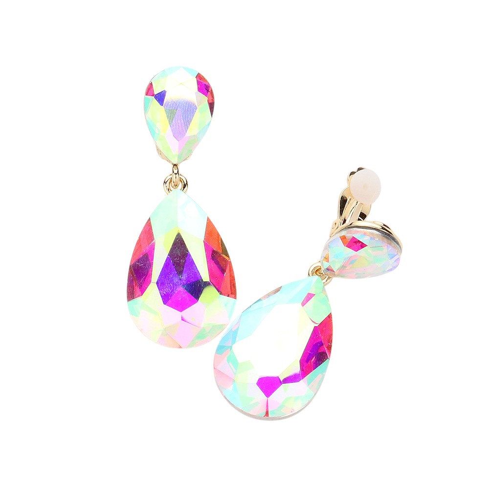 Details • Size : 0.75" X 2" • Clip On • Chic teardrop crystal clip-on earrings with a stunning faceted finish for timeless elegance. Designed for comfort without the need for piercings, these lightweight earrings add refined sparkle to any outfit—ideal for formal events, parties, or evening occasions. • Lead and Nickel Compliant