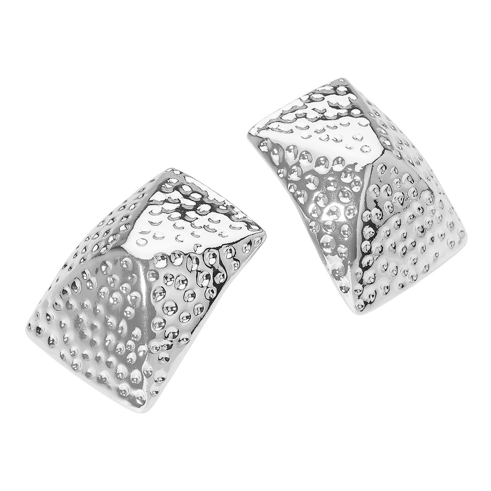 • Stylish hammered geometric clip-on earrings featuring a bold curved shape and textured detailing. Designed for comfort without pierced ears, these statement earrings elevate any outfit with their modern sculpted look.